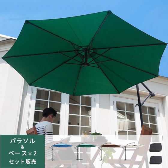 サンブレラ サイドポールパラソル 300 グリーン ベージュ ショップ