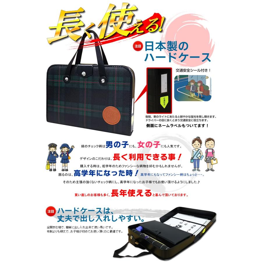2本組文鎮 本石硯 高級書道セット ハードケース 緑チェック柄